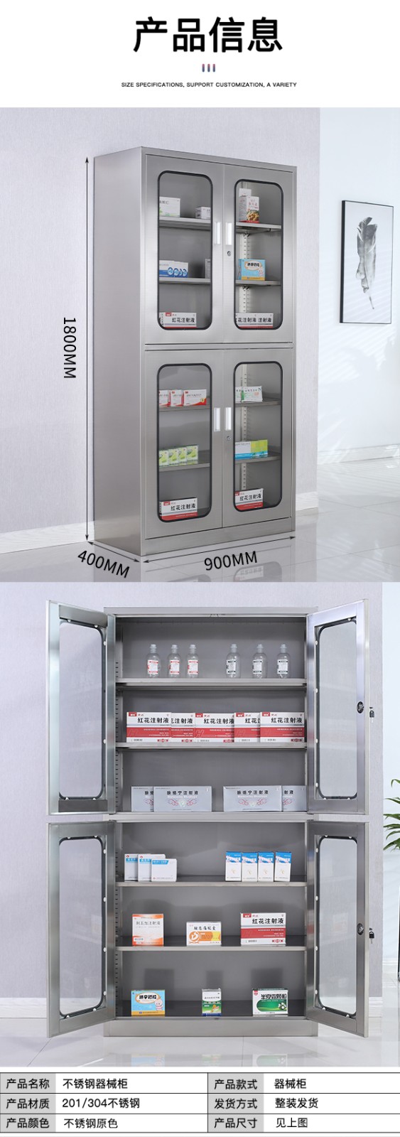 不銹鋼西藥柜上下器柜